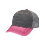 • 100% cotton twill pigment dyed, garment washed, nylon mesh back panels