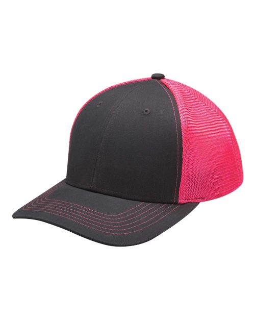 - Contrast color top stitching on visor & back mesh panels